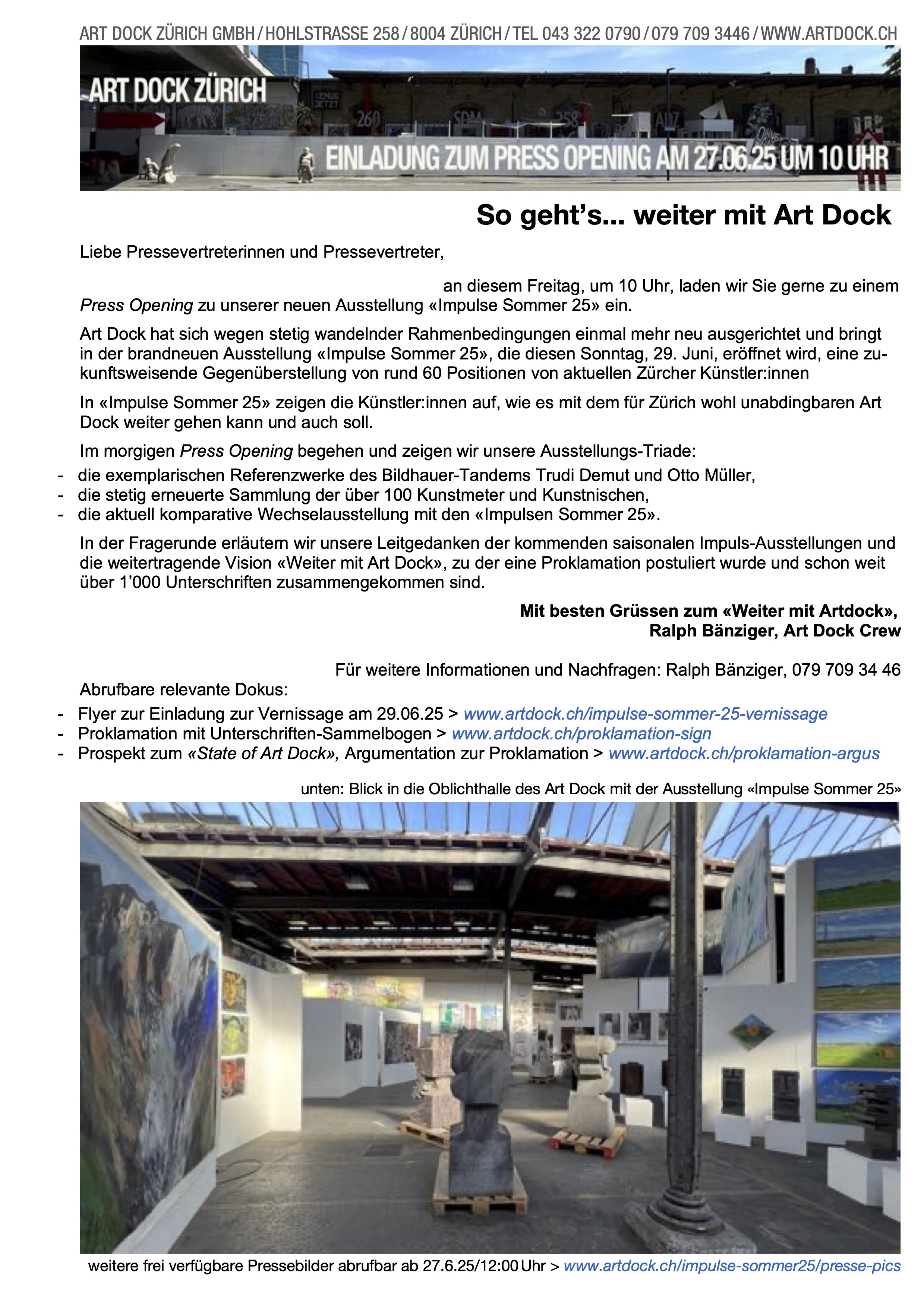 8004 ZÜRICH · Hohlstrasse 258 · info@artdock.ch · TEL 043 322 07 90 · Mi-So 13:00-19:00